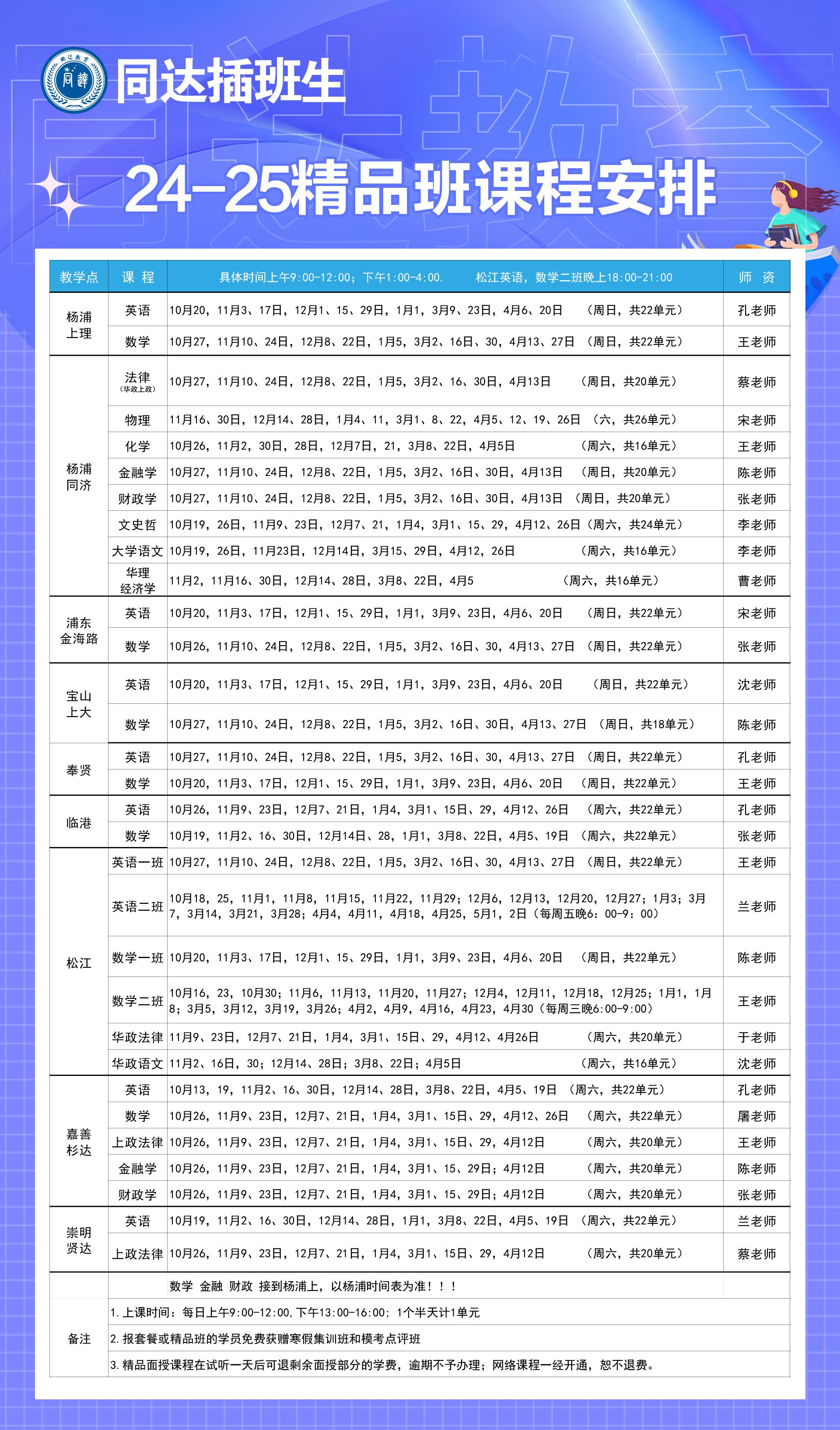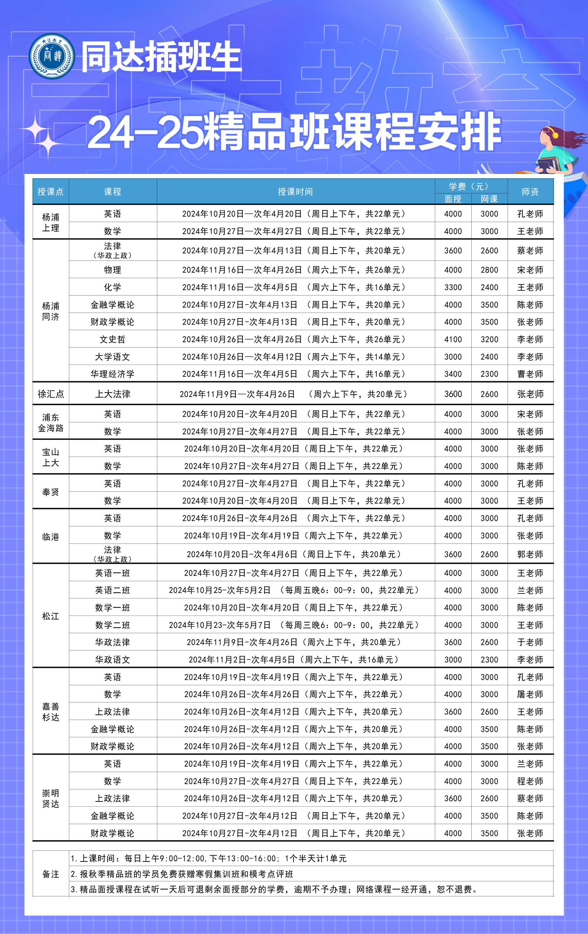 秋季精品班课表